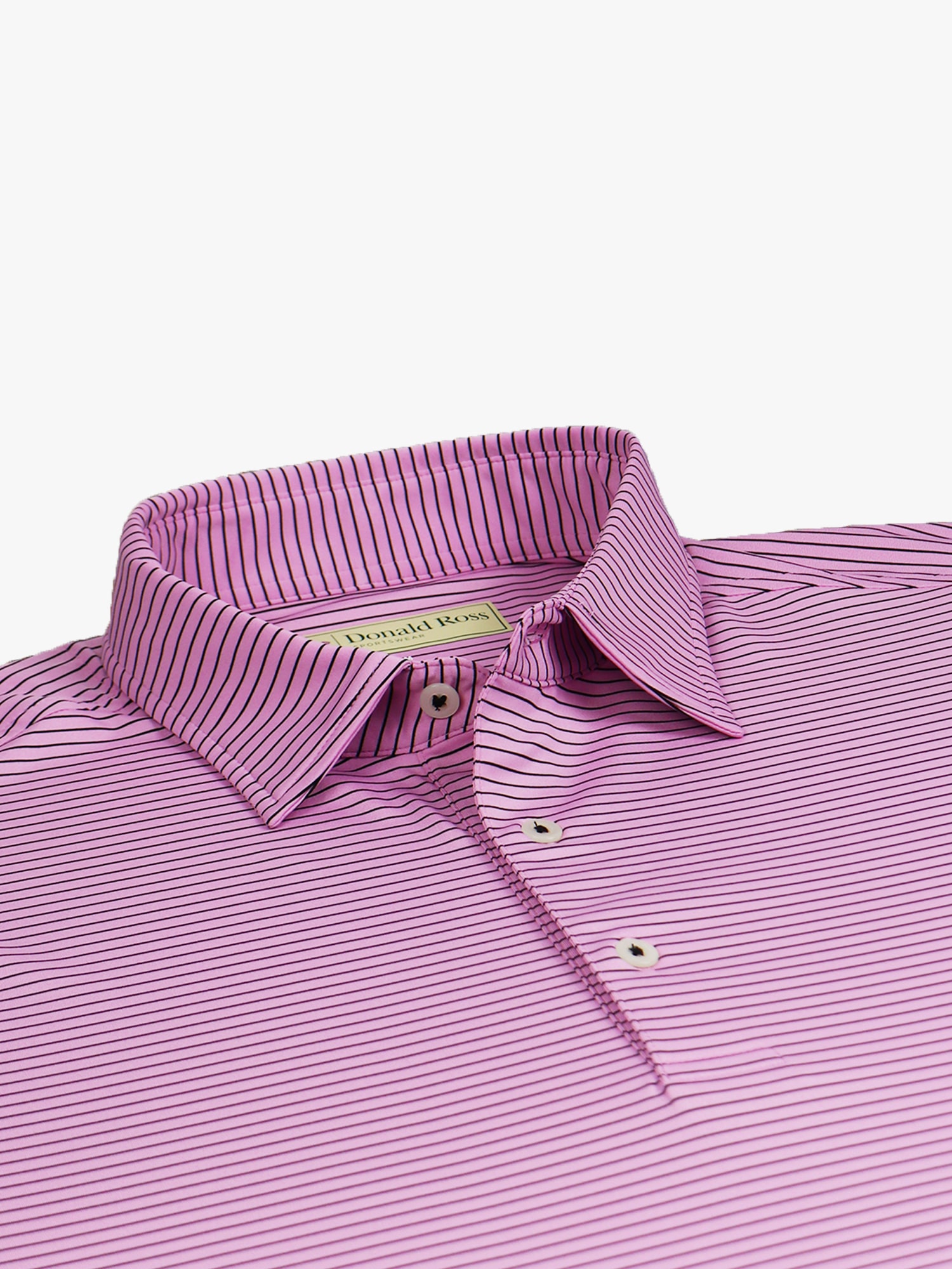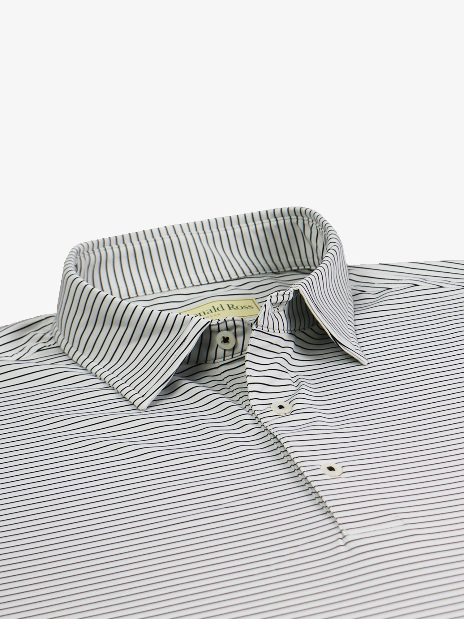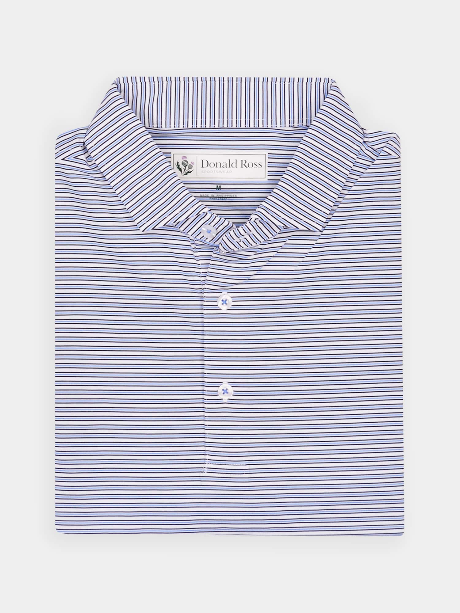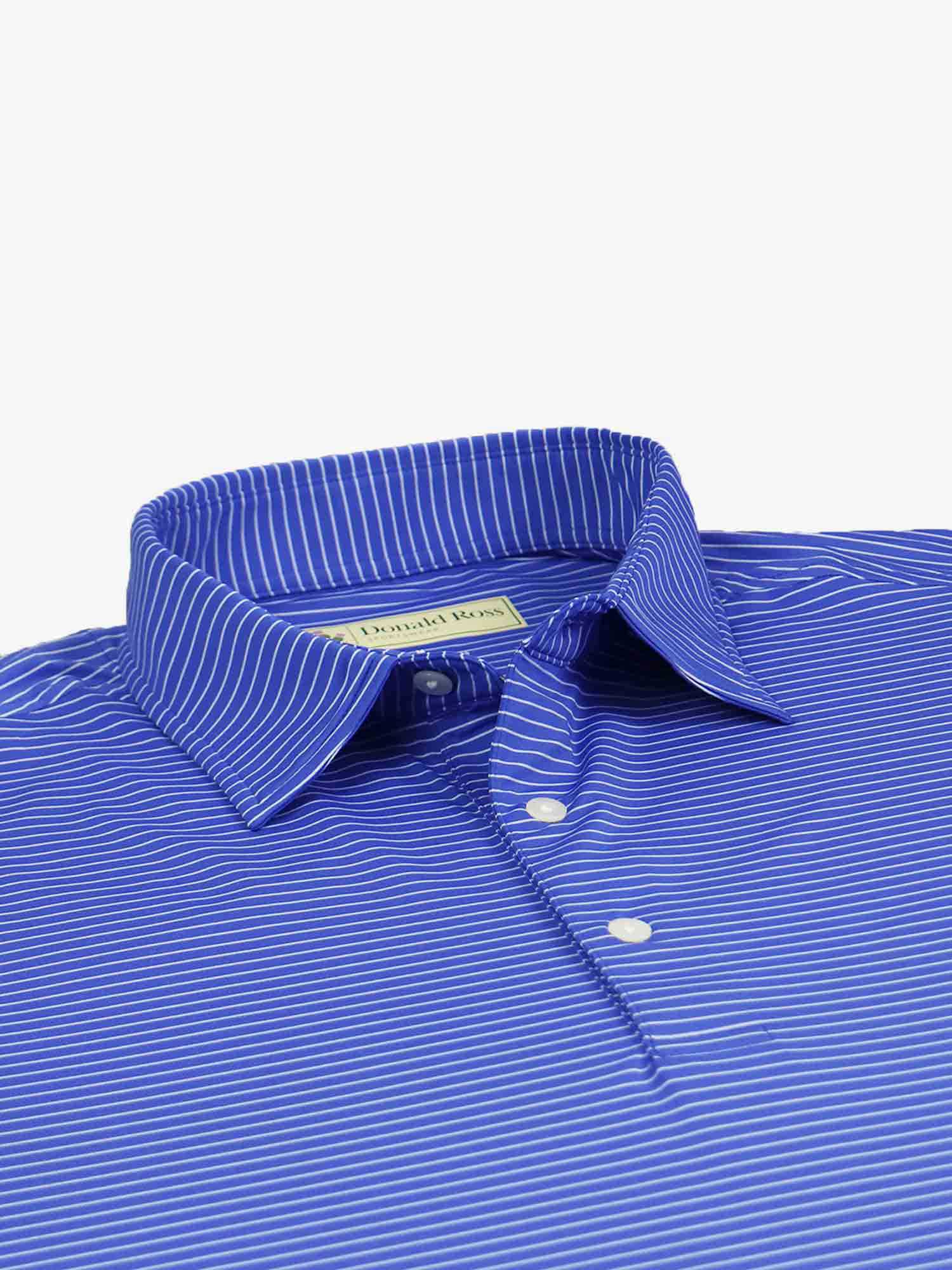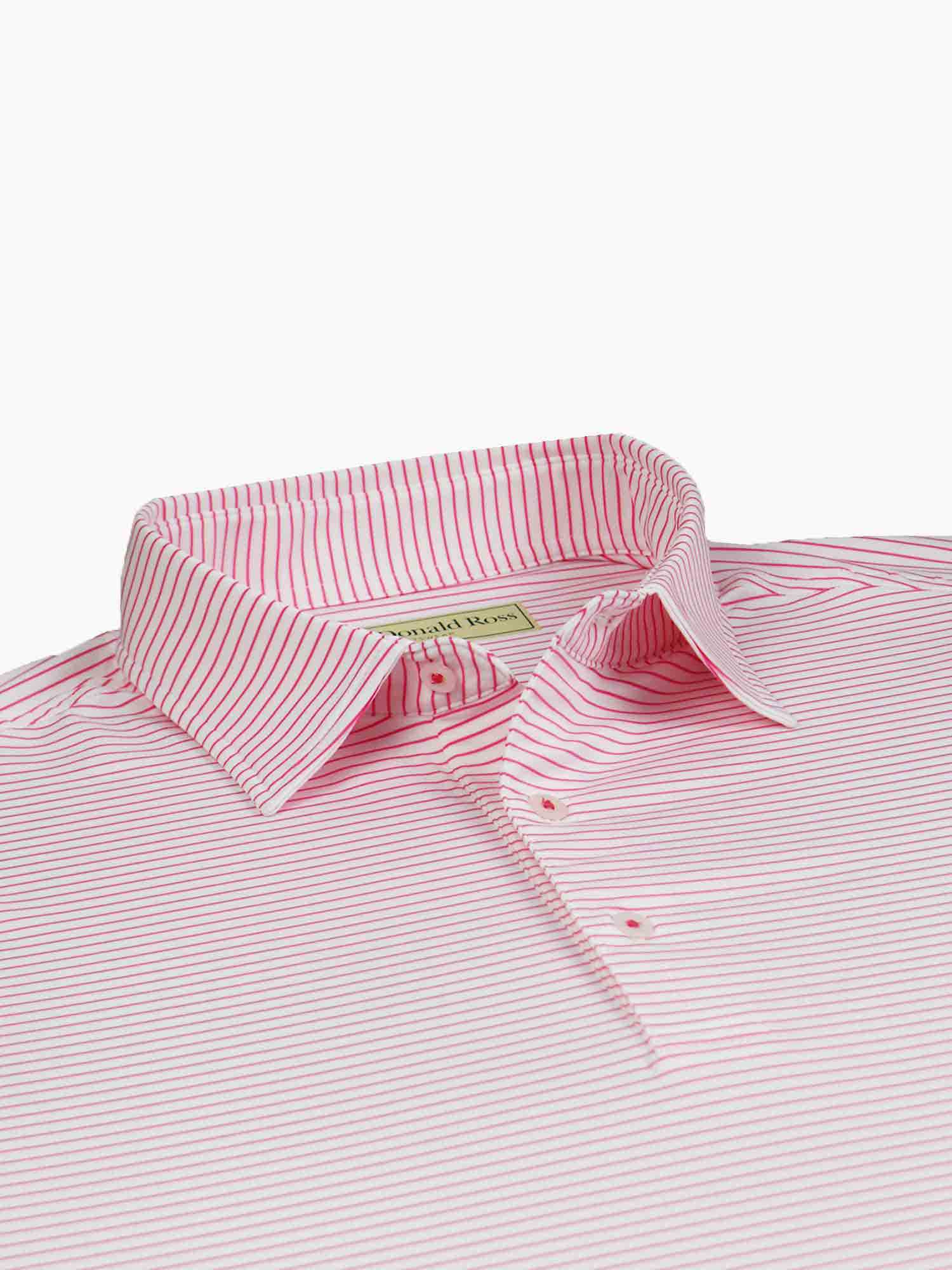 Short sleeve jersey featuring a pencil stripe with a classic three-button placket and self collar.