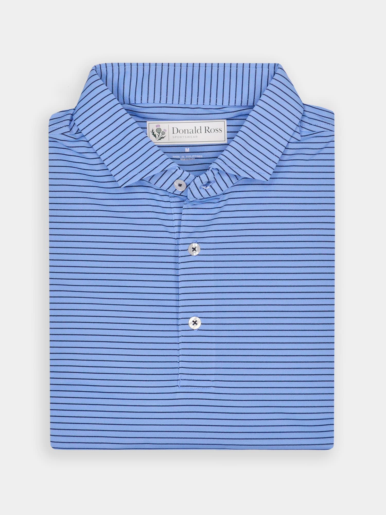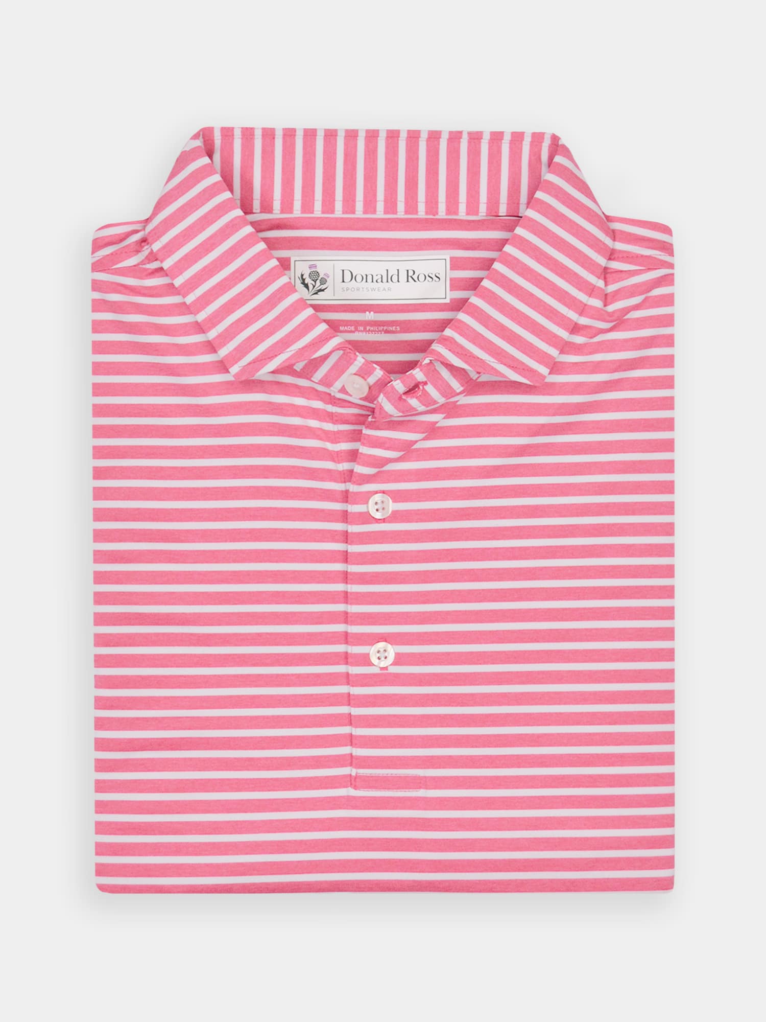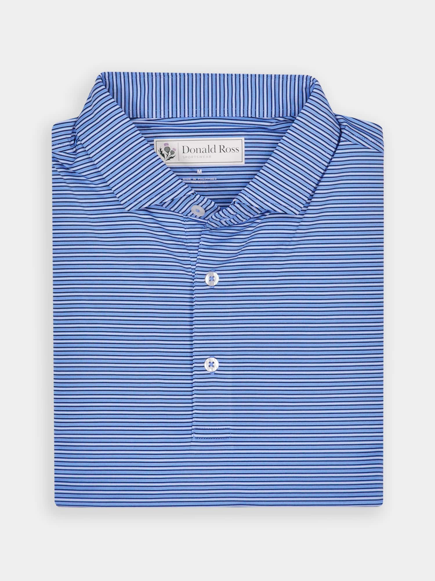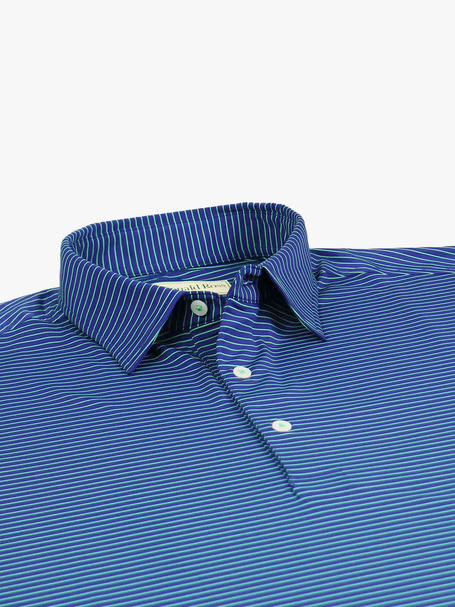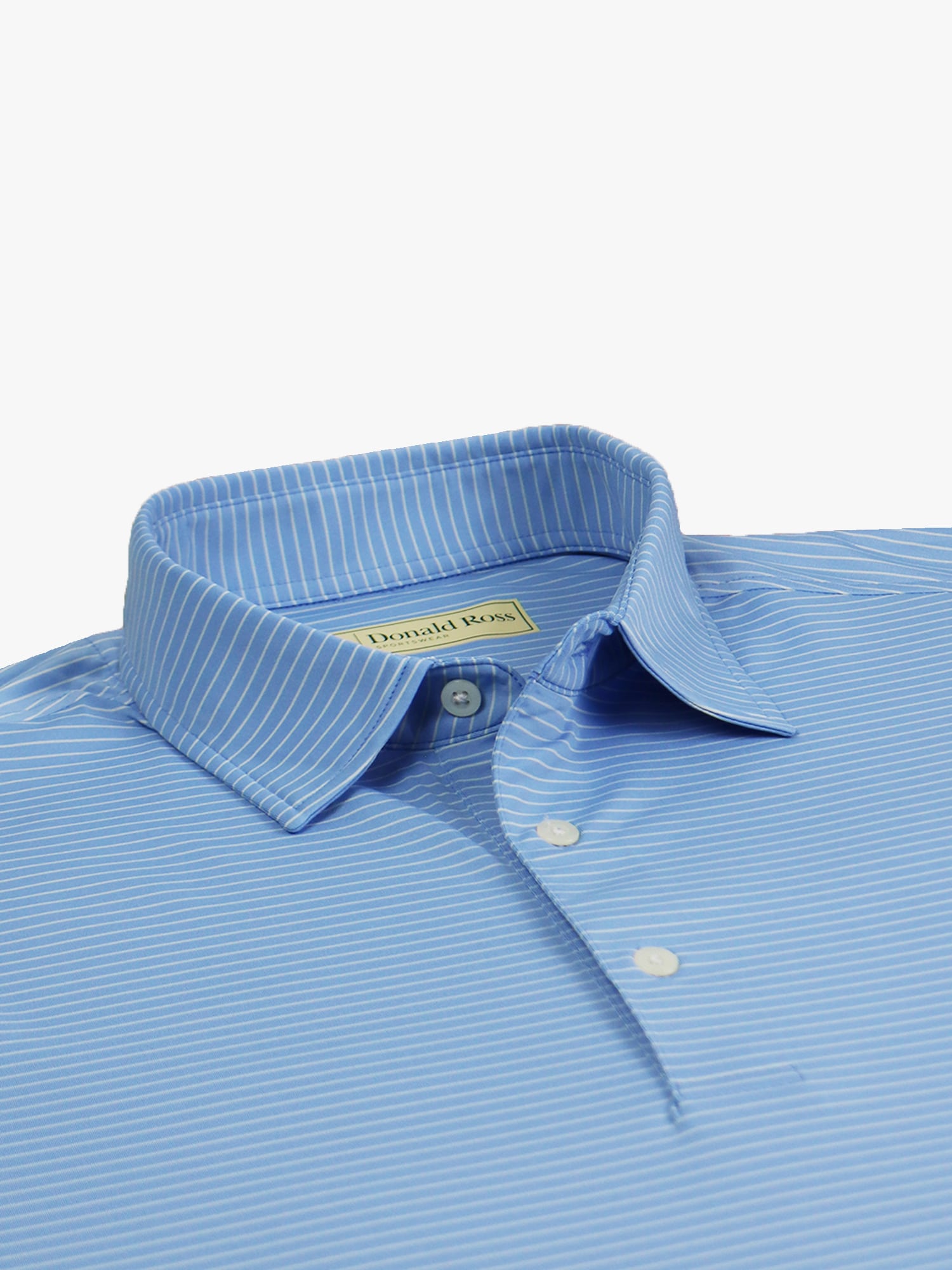 Short sleeve jersey featuring a pencil stripe with a classic three-button placket and self collar.