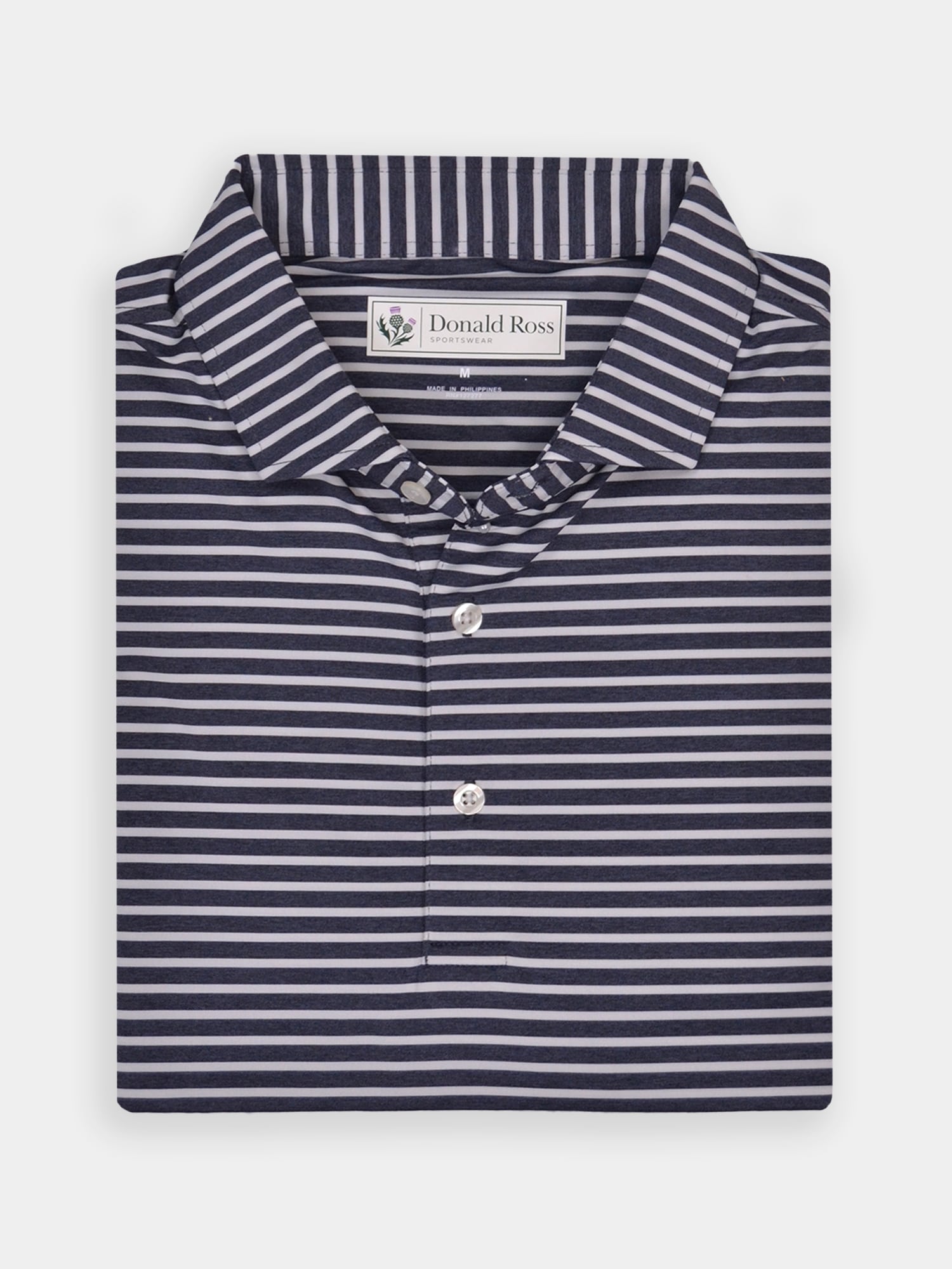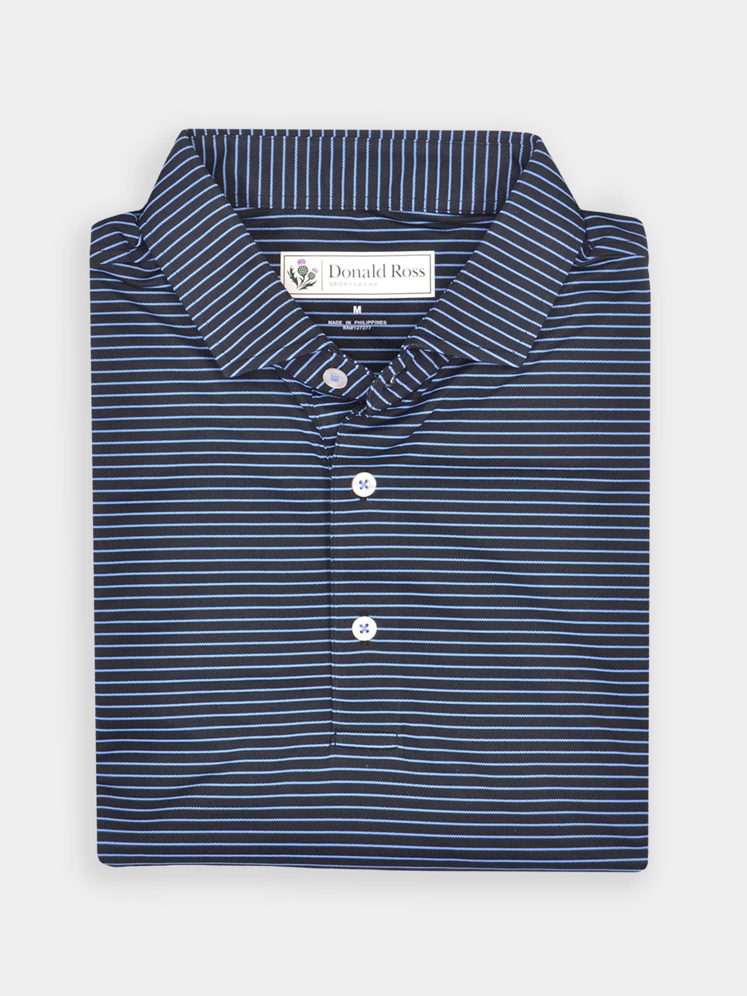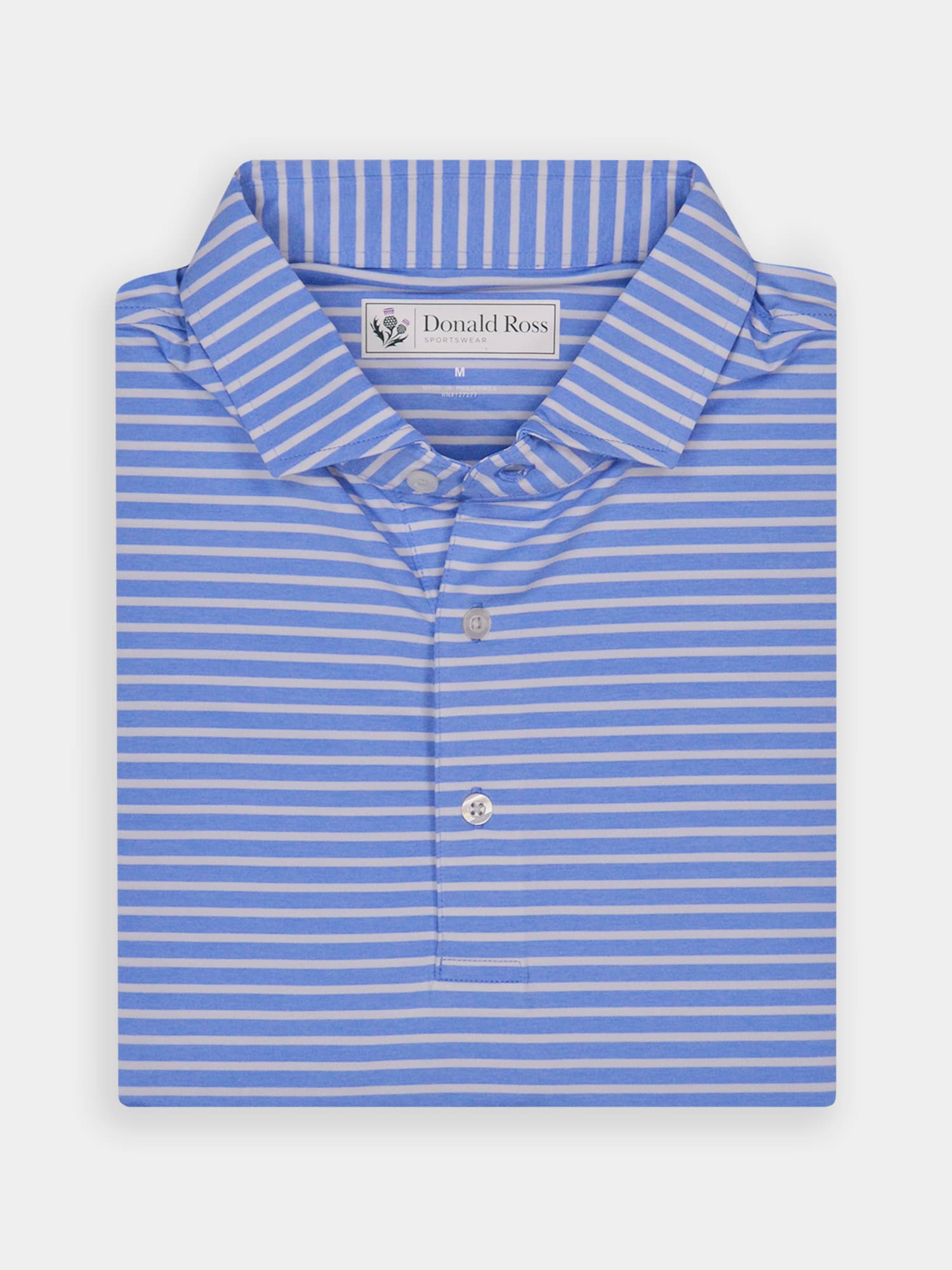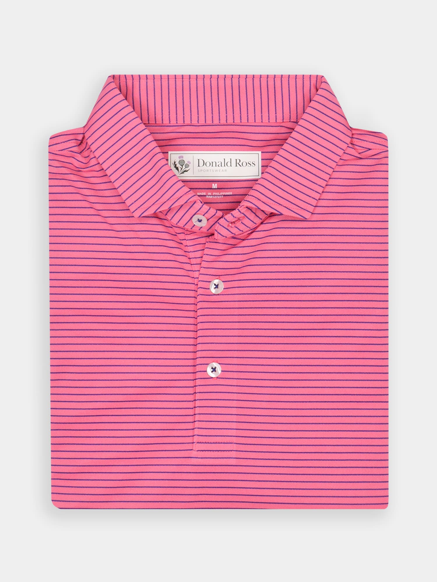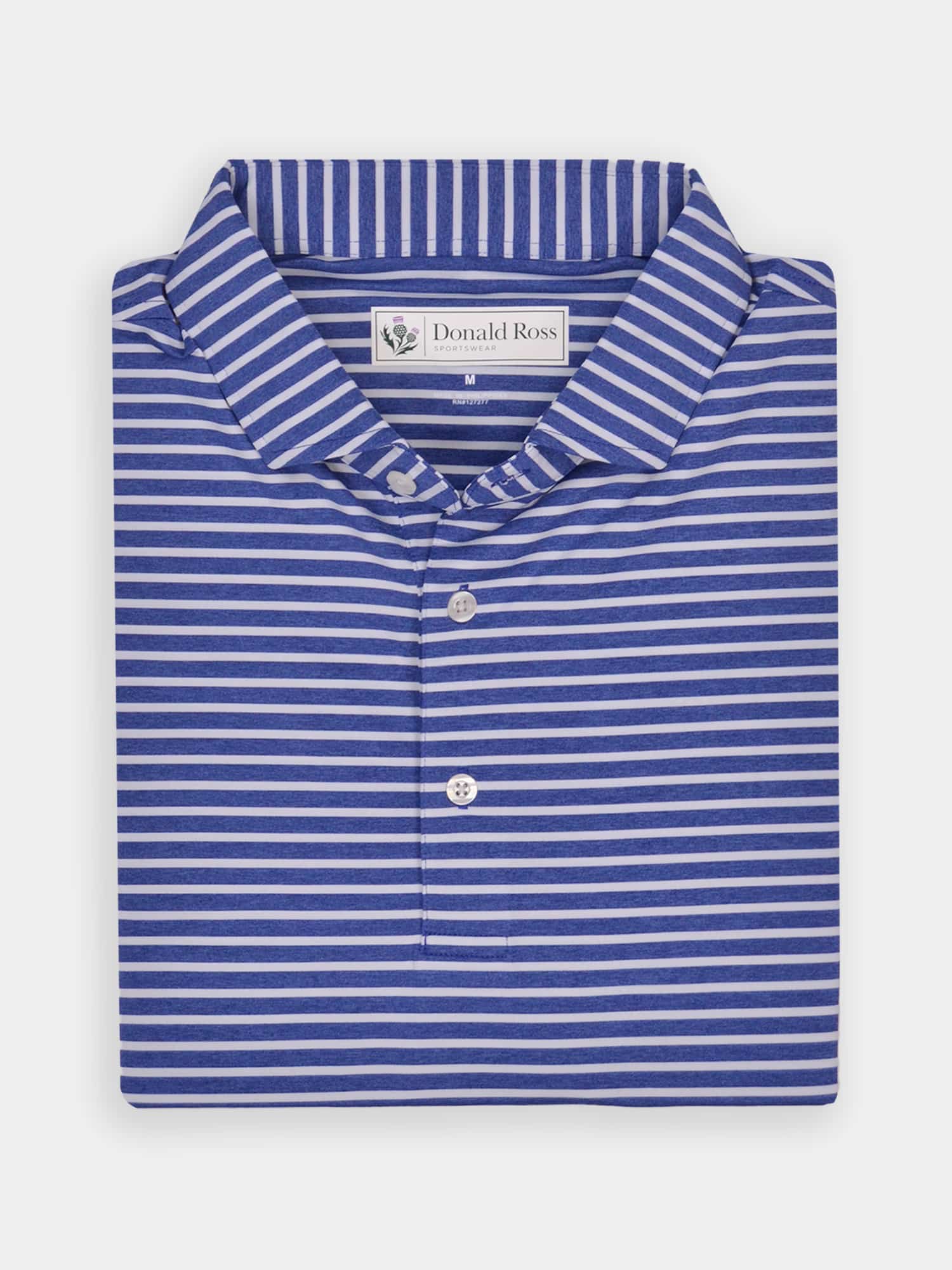 Short sleeve jersey featuring a pencil stripe with a classic three-button placket and self collar.