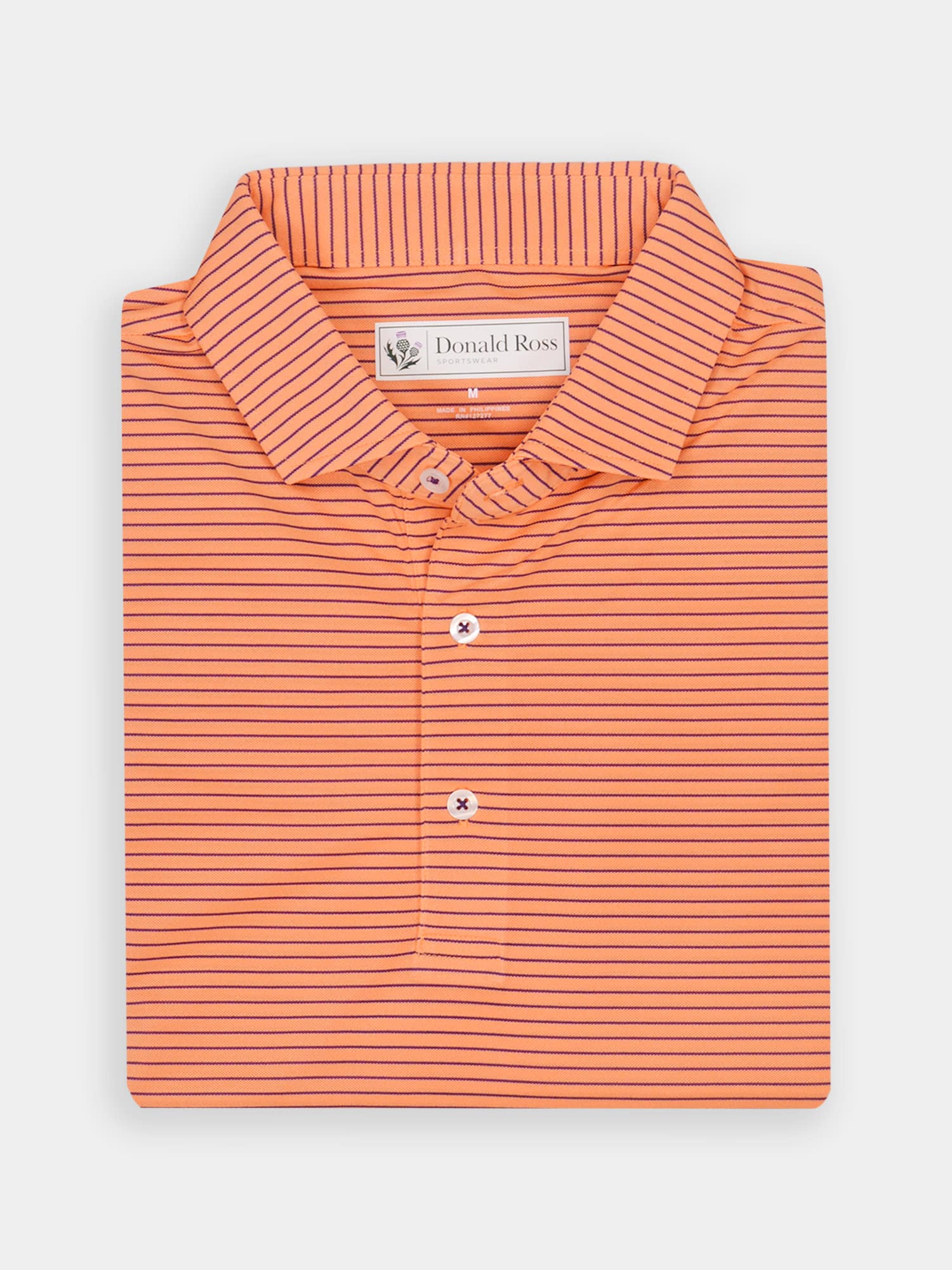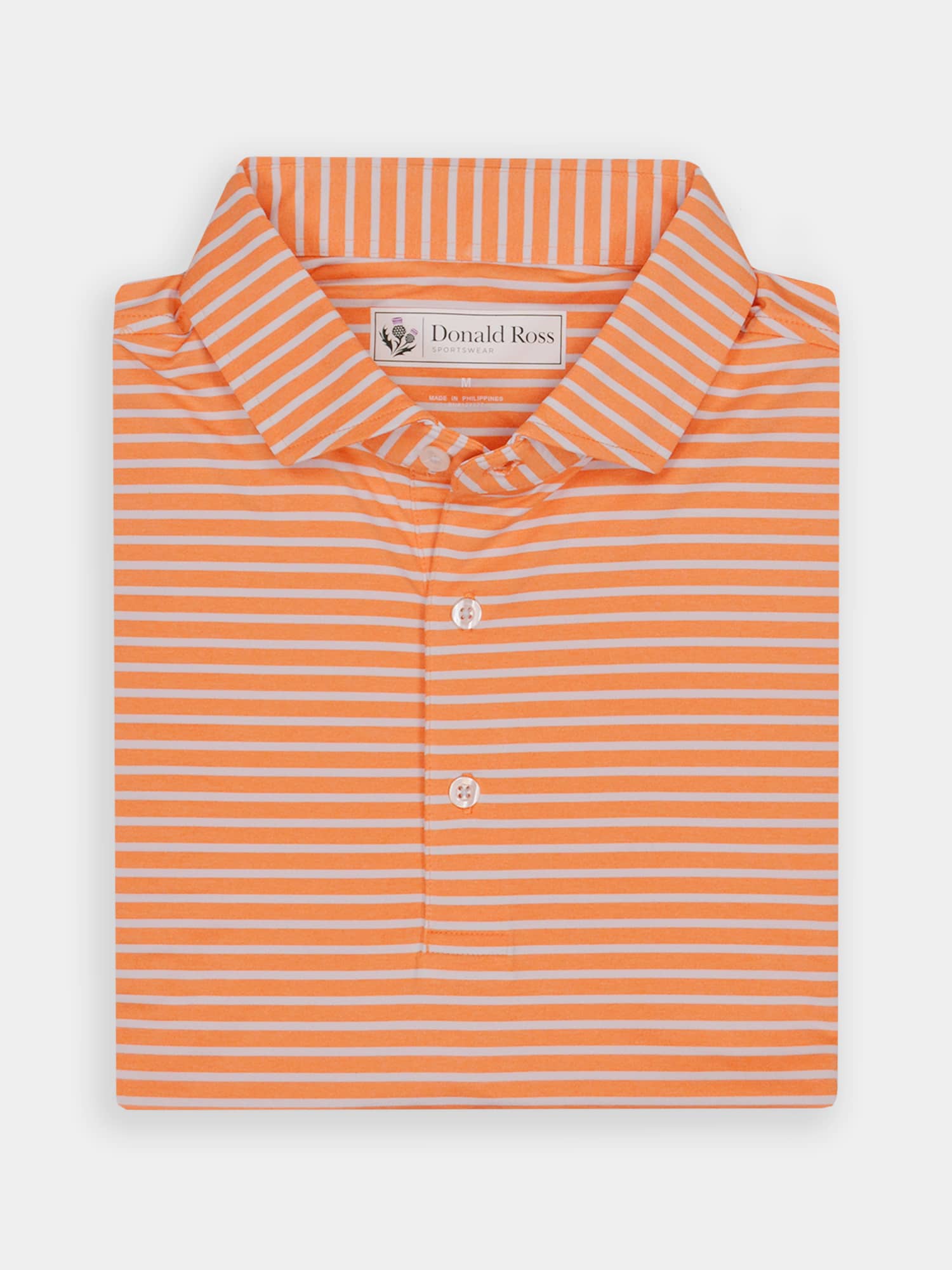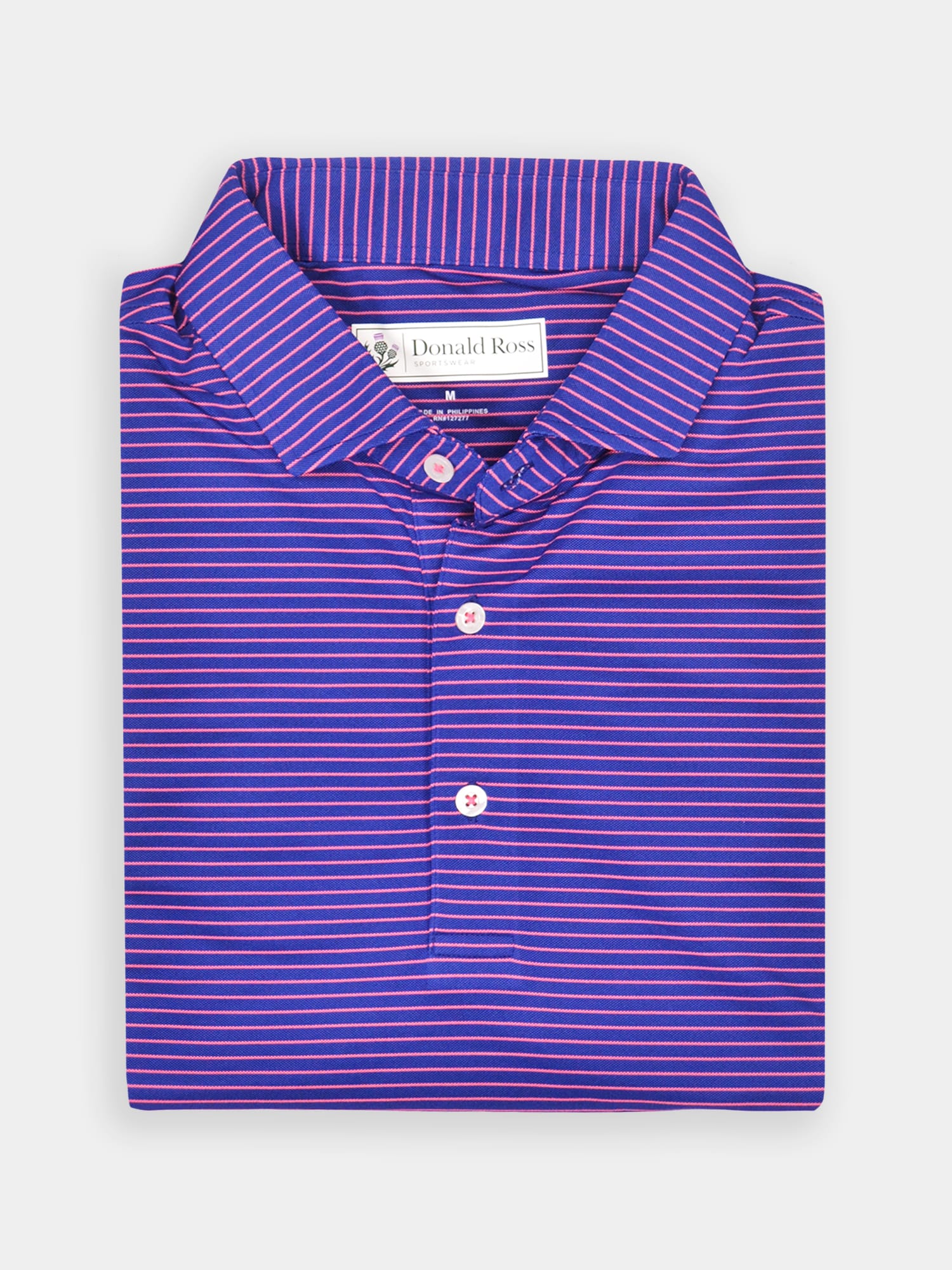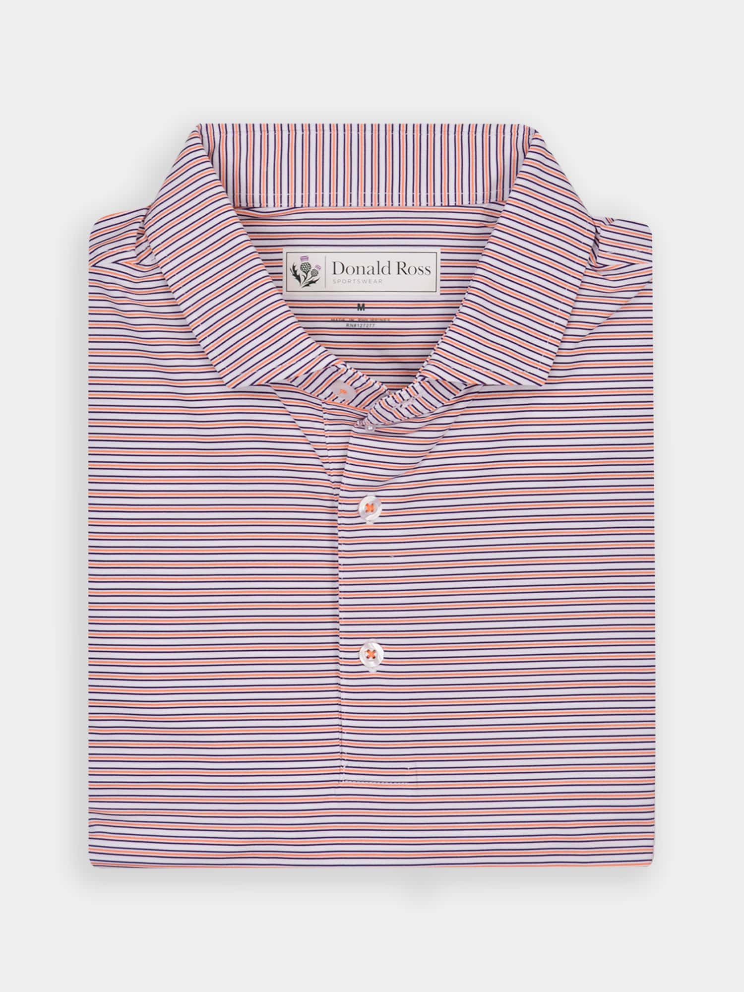 Short sleeve jersey featuring a multi stripe with a classic three-button placket and spread collar.