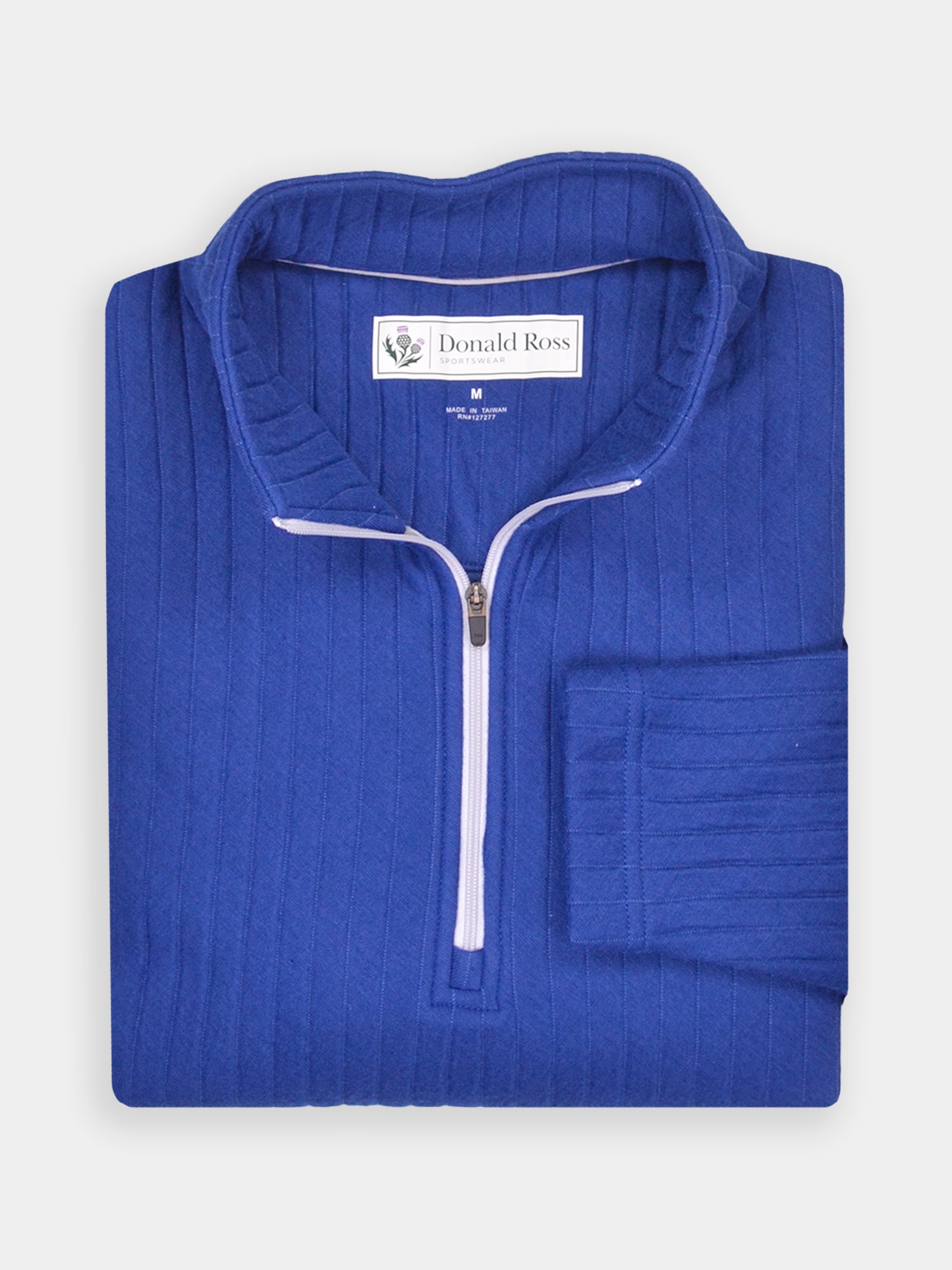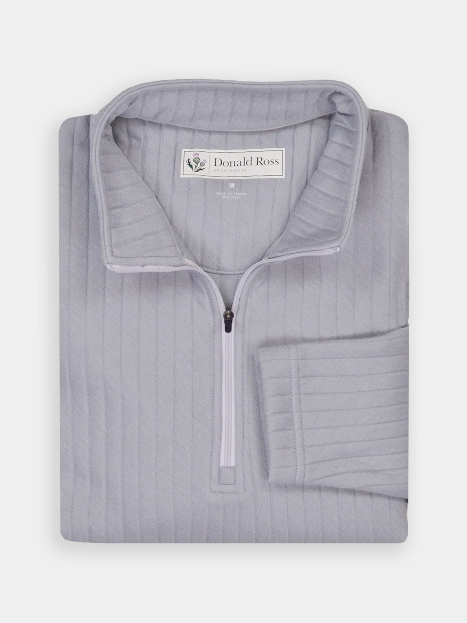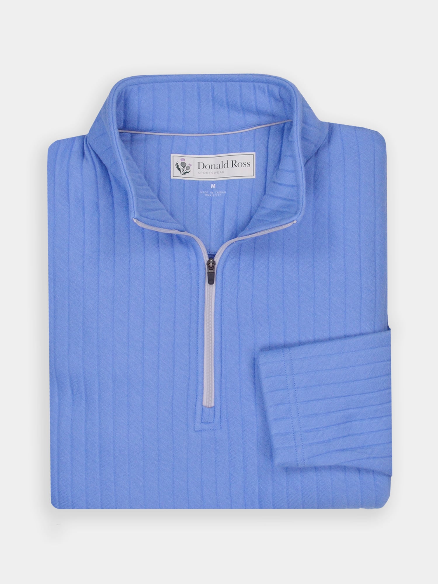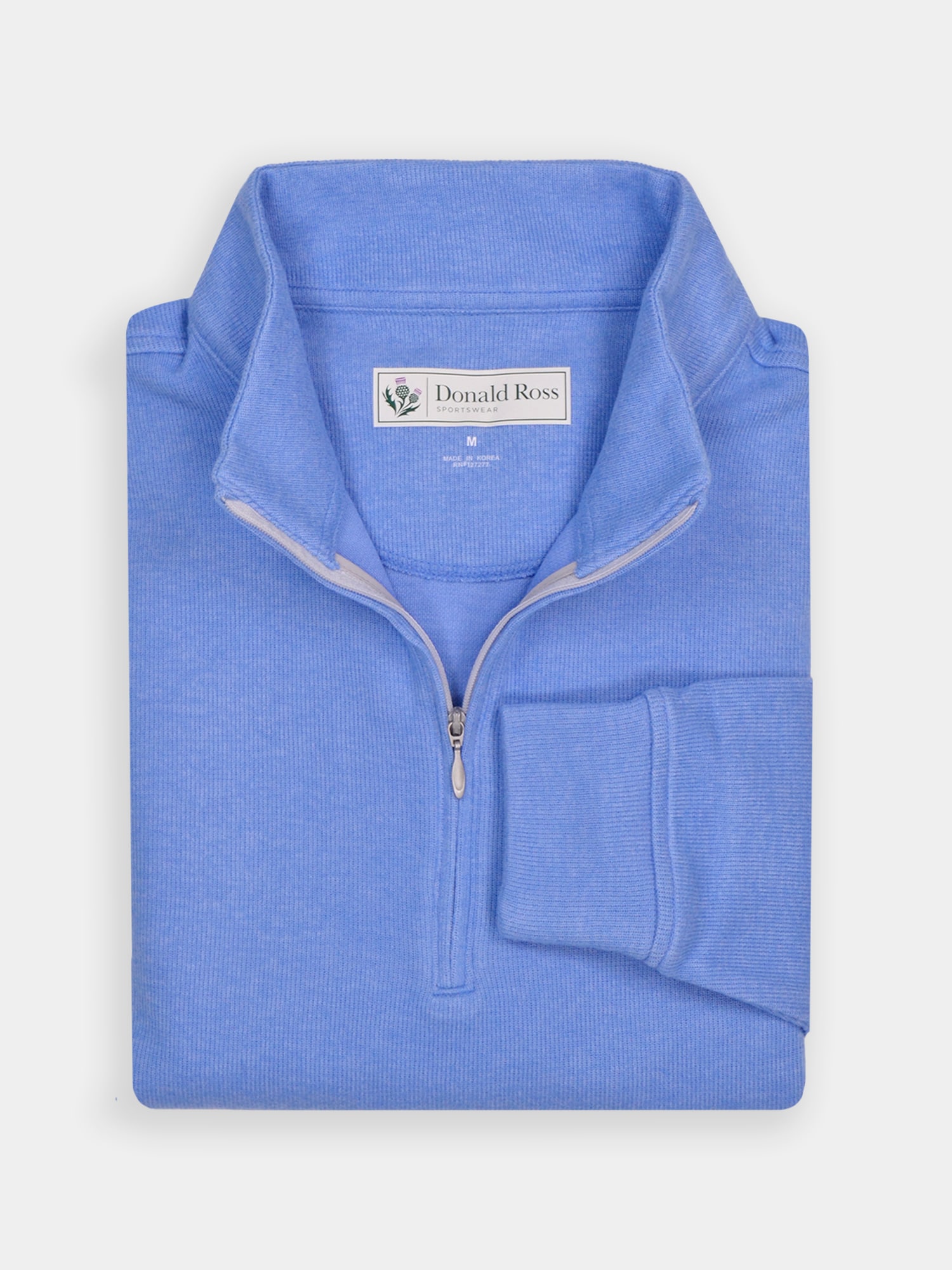 Long sleeve midweight 1/2 zip pullover featuring a drop needle pattern. Model offers ultrasoft fabric fro on and off the course. Model is constructed with banded cuffs and bottom, set-in shoulder construction, and rubber thistle logo on back collar.