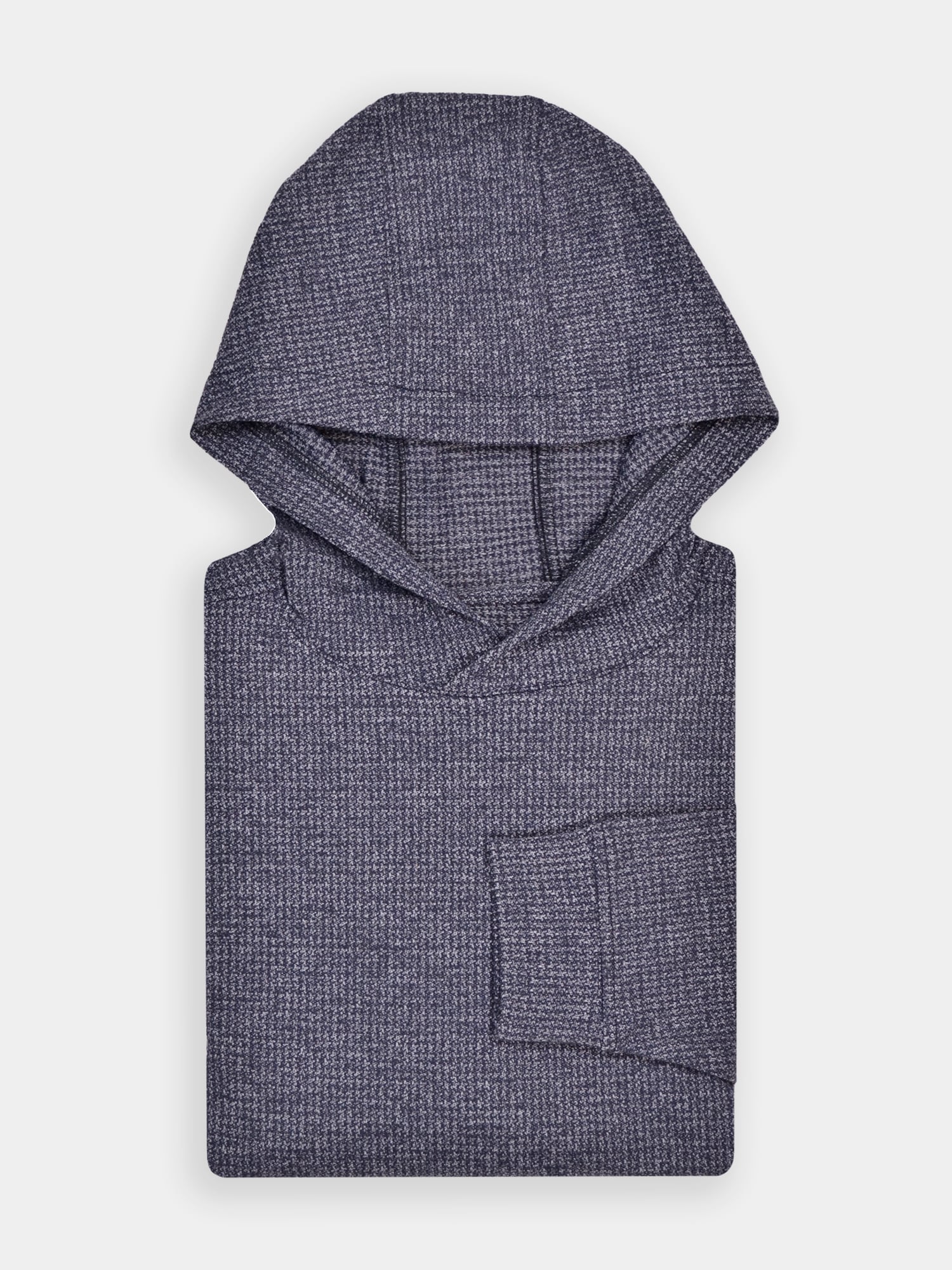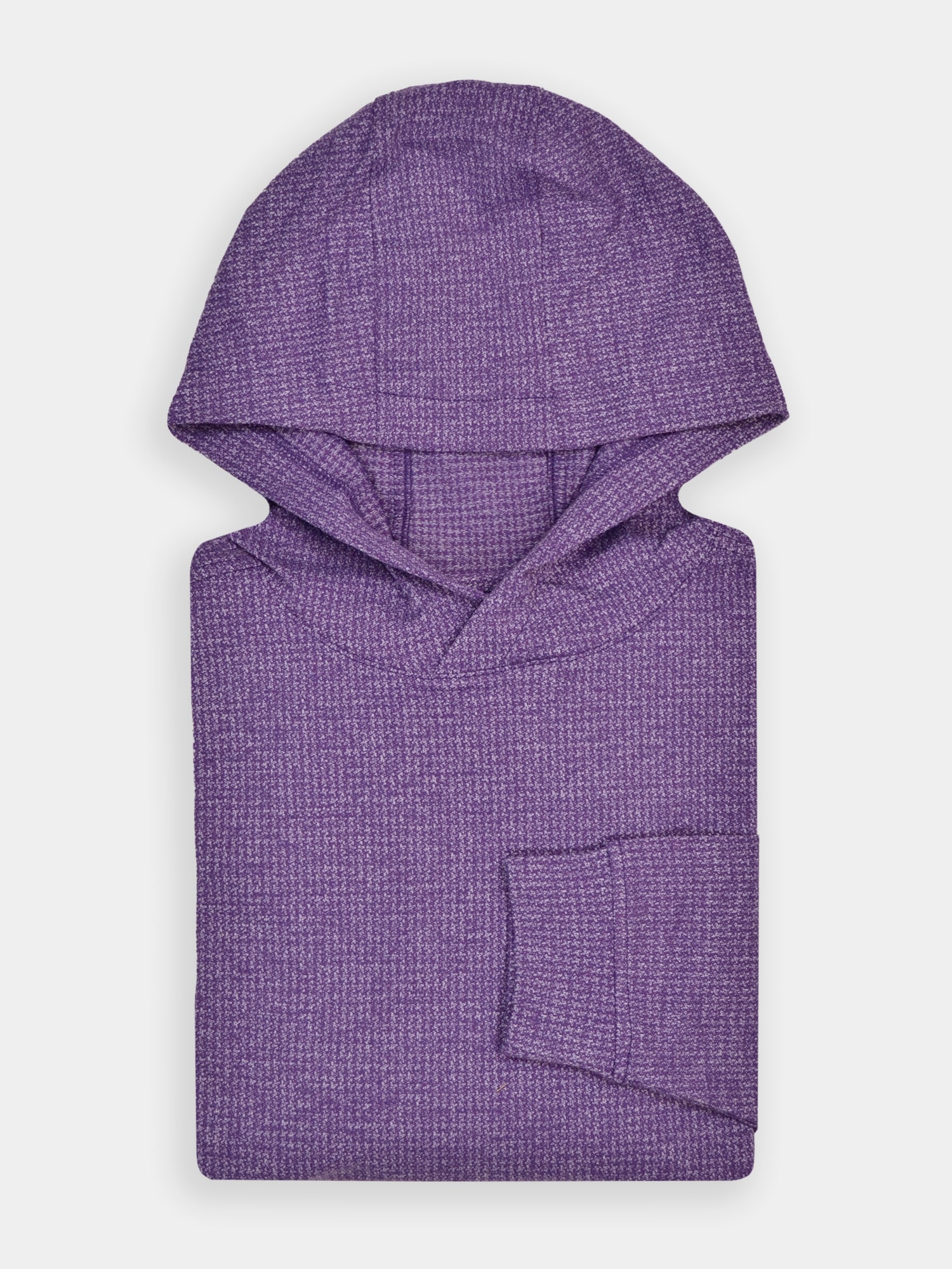 Long sleeve mid-weight hoodie constructed with performance yarn knitted into melanged herringbone pattern. Model features set-in sleeve construction, embroidered thistle logo on wearer’s right wrist as well as banded cuffs & bottom.