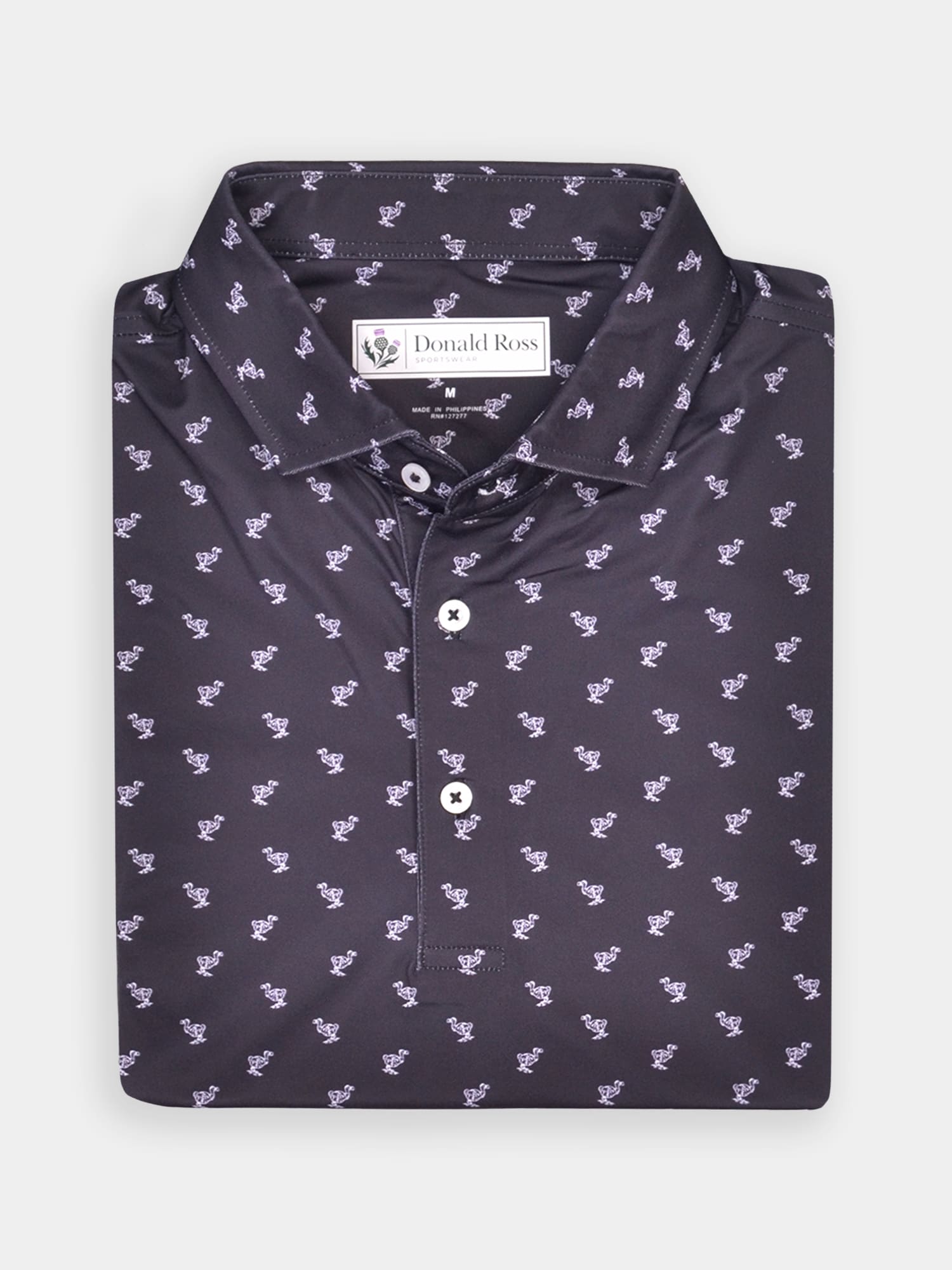Short sleeve jersey featuring a sketch dodo print with a classic three-button placket and spread collar