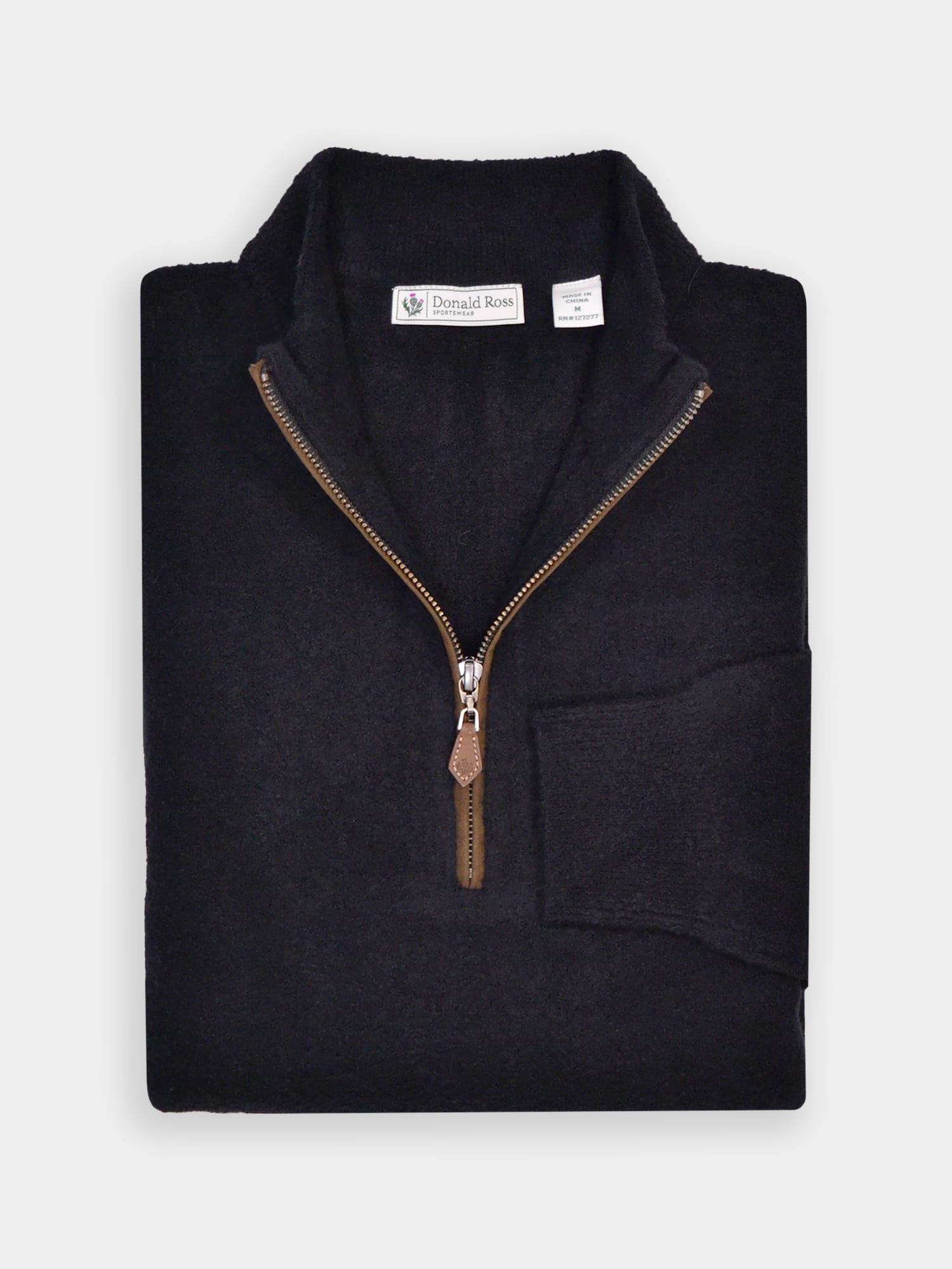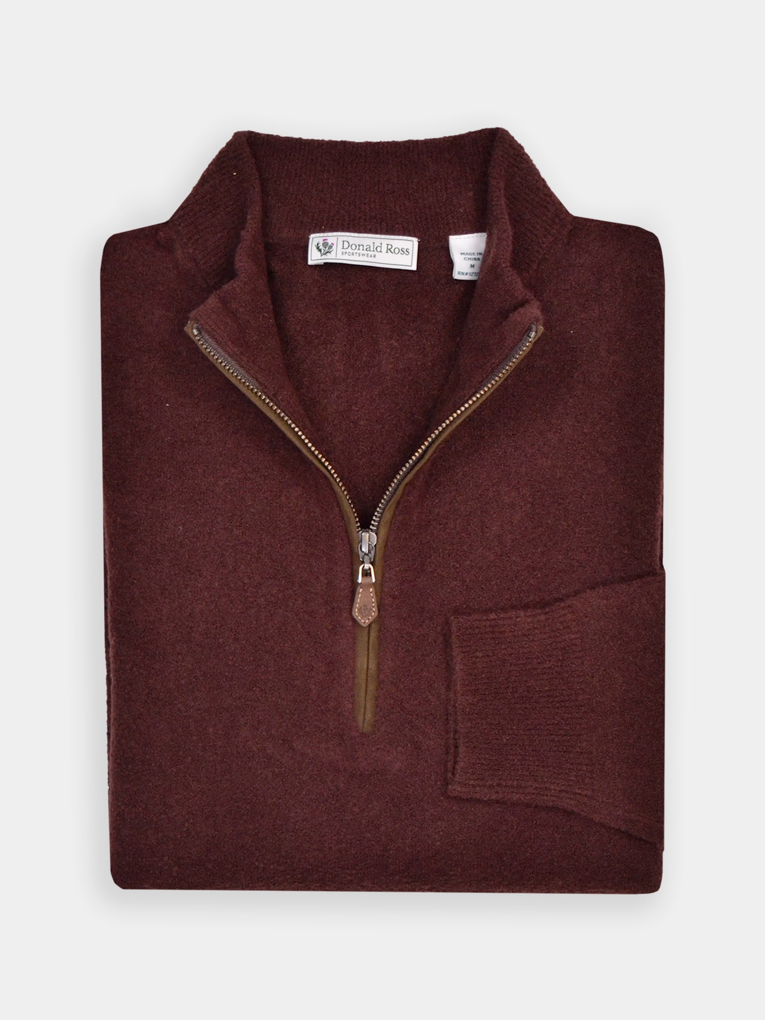 Long sleeve heavy weight 1/2 zip pullover. Model offers premium fabrication for a luxurious handfeel. Model is constructed with set-in shoulder construction, banded cuffs and bottom, and rubber thistle logo on back collar.